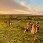 “Currently we have over 30 alpacas and 1 llama. The vision of the farm is to promote and establish an ethical, cruelty free and sustainable fibre industry in the U.K. We’ve been farming hyuacapa and suri alpacas for 12 years. Our journey started in 2012, when we bought 3 female yearling alpacas (Molly, Daisy and Sorrell) for our small paddock as family-friendly pets and fluffy lawnmowers rolled into one. That was it …we were completely hooked! Fibre farming is not currently a recognised industry in the UK, only food producers are credited with government subsidies. Society is starting to consider where our food originates, but it’s time for us to think about where our clothes come from.