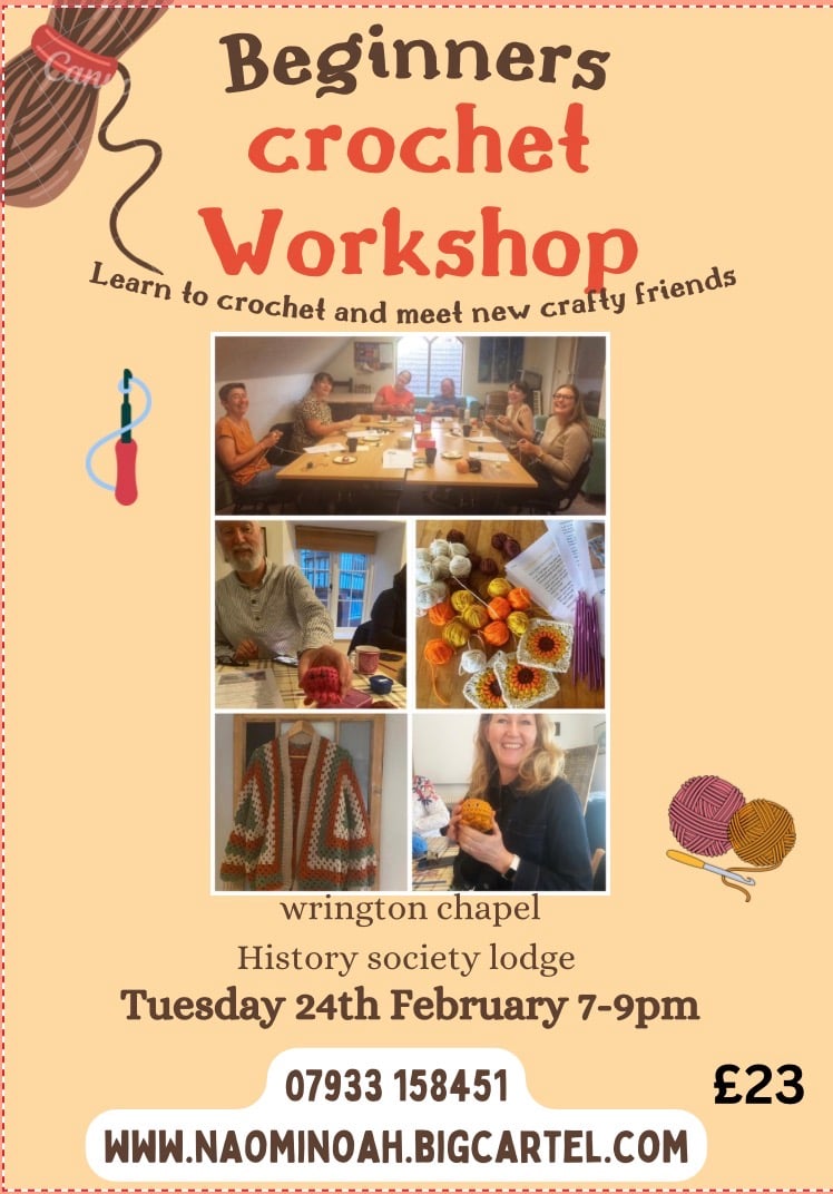 Learn to crochet at Wrington Chapel Tuesday February 24th 7-9pm